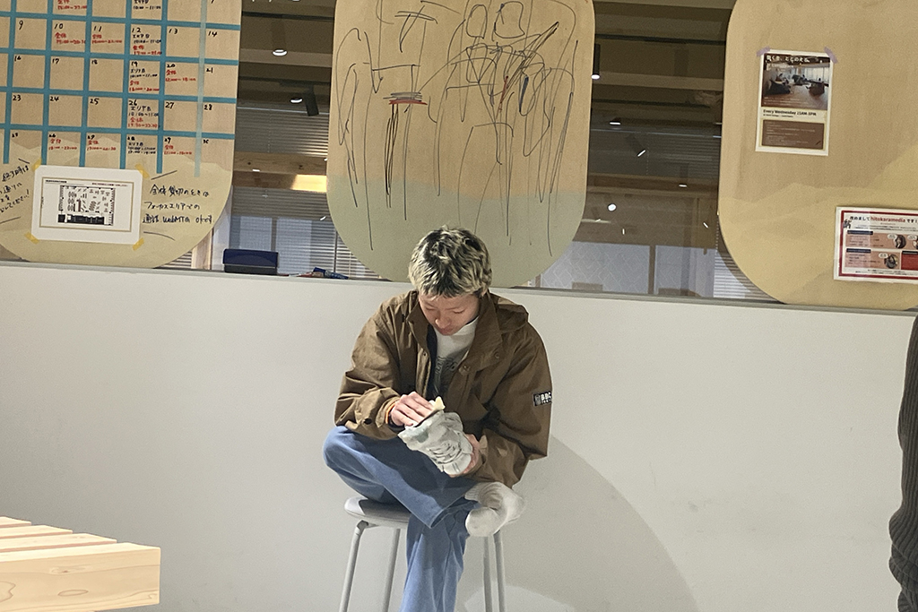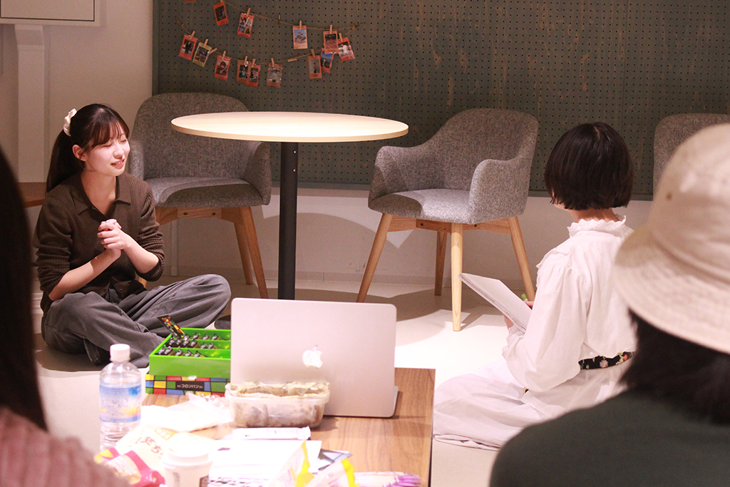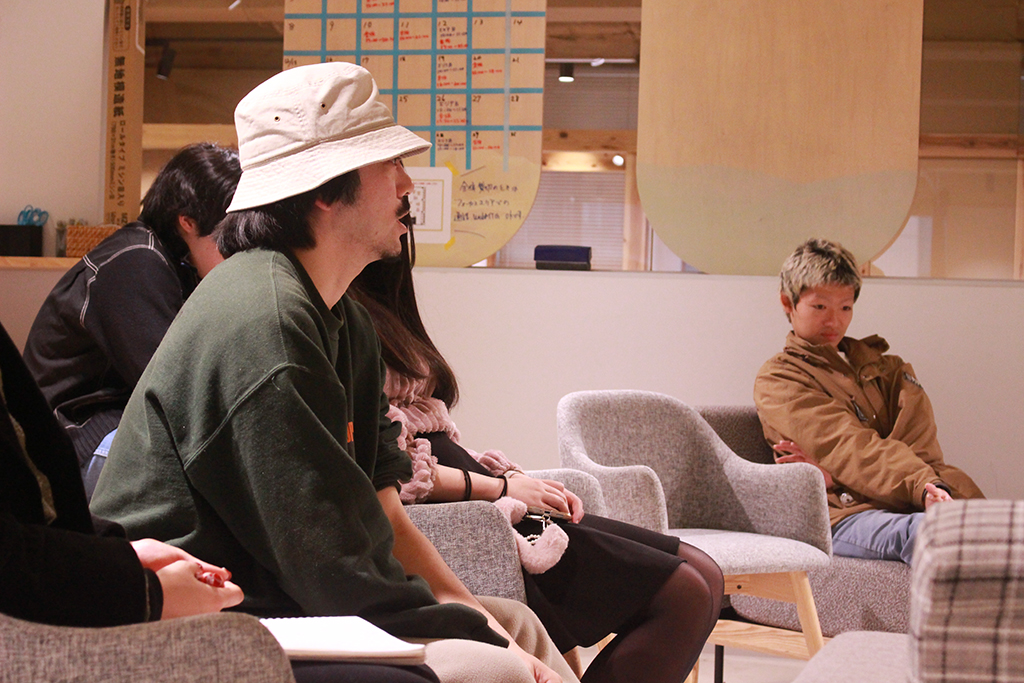発表を終えた後は、観ている生徒の皆さんで感想を寄せていきます。一人の感想が起点になり、さらに感想が連なっていく。同じ時間や場所を共有する体験の中で、異なる着眼を持ち寄る。このことは、これまでの授業での「散歩」にも通ずるようにも感じますし、それらに伴う「観る」という行為が創作をより豊かにしていくことにも改めて気付かされます。