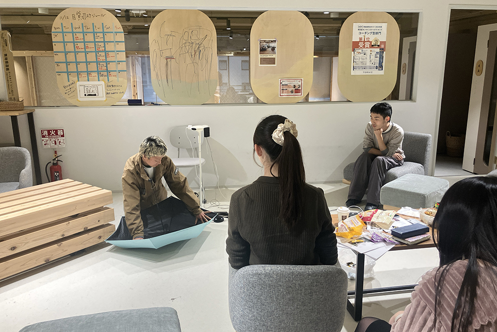 今回の発表が3月に控える成果公演に目を向けていく機会にもなったよう。授業終盤には、生徒の皆さんからフライヤーや会場構成のアイディアもあがります。さまざまなクリエーションが交錯しながら、創作が進んでいきます。