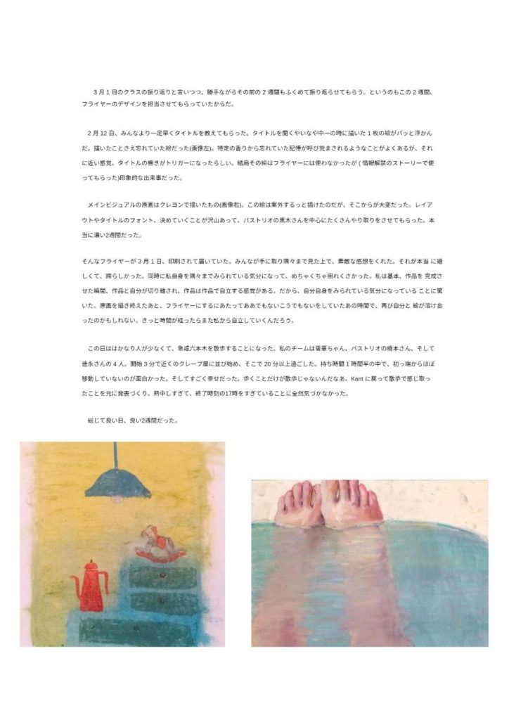 このクラスでは、文章やイラストや写真など、形式を問わずに生徒の皆さんの持ち回りで順番にリフレクションノートを提供してもらっています。それぞれの生きてきた経験。授業に参加して味わった体験。その体験が終わったあとの体験。さまざまな経験と体験が連なりながら、このクラスが進んでいきます。