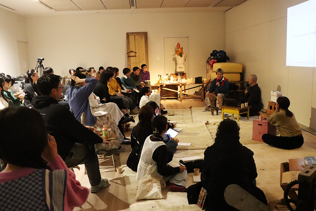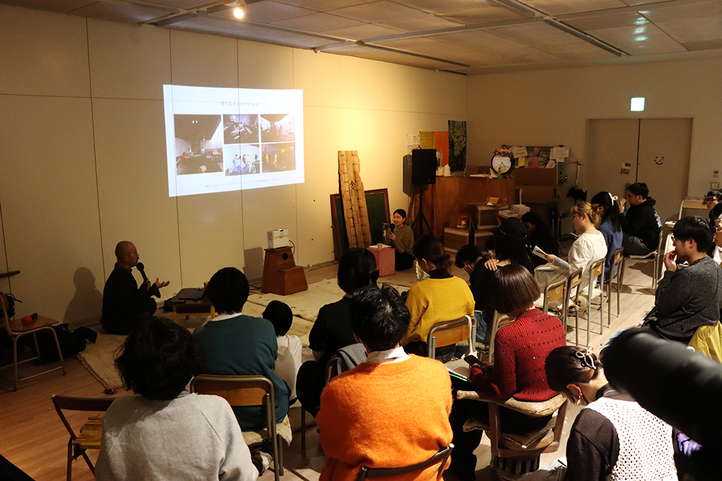 11月30日(日)は活動の導入として、生徒の皆さんとともに一般参加の方々も募り、メイン講師の池田さんとGAKU事務局長の熊井さんによるトークイベントを開催。「キュレーションやアートが持つ歓待性とリサーチの手つき」という切り口から池田さんの活動に触れつつ、このクラスのテーマを紐解いていきました。