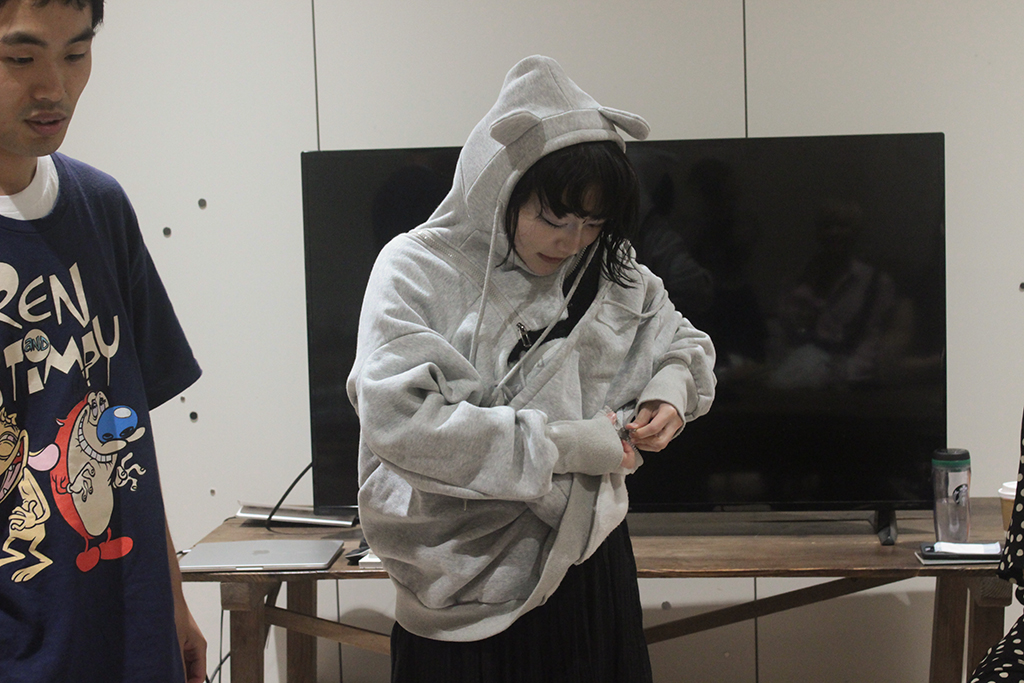 これからの創作の起点となる、「いとおしさを感じる一着」を持ち寄った今回。机に広げ、触ったり、着てみたりしながら、自分自身のその一着への記憶や想いが語られていきます。学校では「なにそれ」と指をさされたけど、今でもお気に入り。母親が買ってくれて、何気なく着ていたけど、今は毎年冬に着ないと落ち着かない。過去にこの服を着ていた人の存在を感じられて安心する。自分には似合わないけど、いつか似合う誰かに着てほしい。なぜかわからないけど、ずっと飾ったまま。なかには「これまで言葉で表すことのなかった事柄や感覚を言葉にした」という生徒の方も。生徒や講師からの問いかけも通じて、自分自身と一着の物語を紐解くことで、それぞれの「いとおしさ」の輪郭やファッションへの想いを感じられる時間になりました。