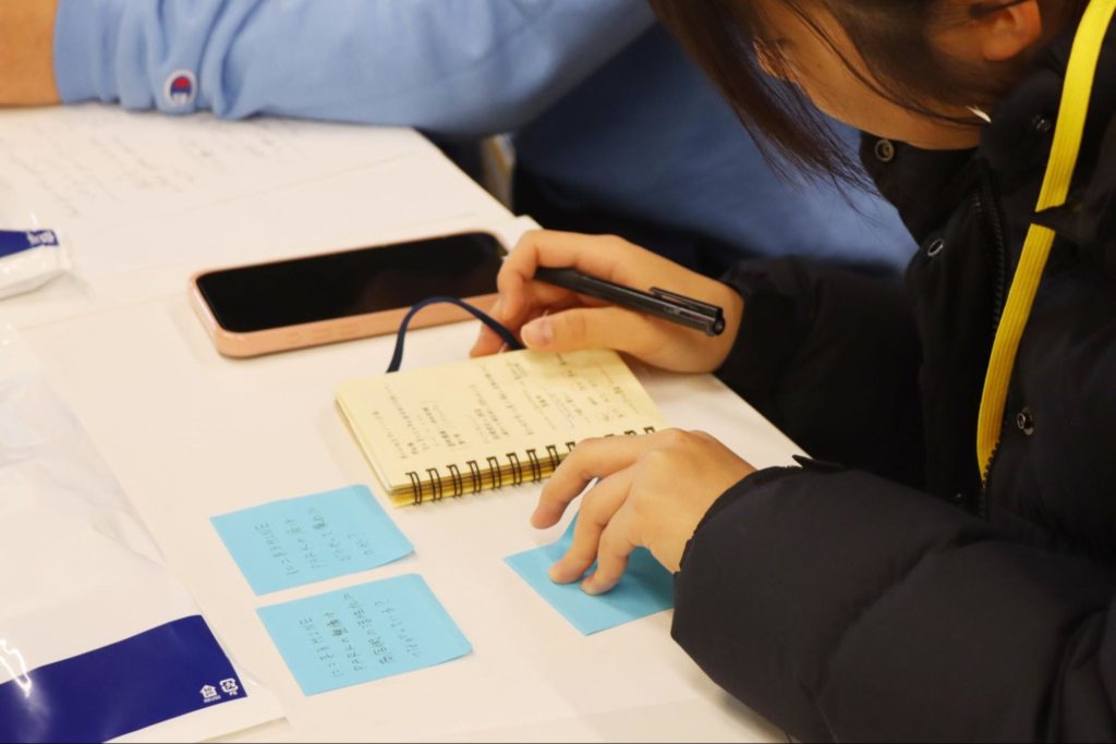 授業の中での製作の時間はあと2回。次回の授業に向けて廣岡さんからは、「敷地を改める人も居ていい。普通考えたらこうだよね、ということの中に、考えていないプロセスがたくさんある。みんなが、よりも、まず自分がこうあってほしいと思う気持ちを大切にしてほしい。それを軸にしてほしい」と、生徒の皆さんを後押しするコメントが贈られました。